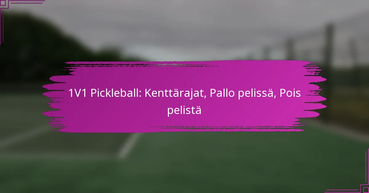 1V1 pickleballissa kenttärajat ovat olennaisia, jotta voidaan määrittää, onko pallo pelissä vai pelin ulkopuolella. Pallo on pelissä, kun se syötetään oikein ja pysyy kentällä pelin aikana, kun taas se katsotaan pelin ulkopuolelle, jos se laskeutuu määriteltyjen rajojen ulkopuolelle tai jos tapahtuu erityisiä virheitä. Näiden sääntöjen hallitseminen parantaa peliä ja varmistaa reilun ja nautittavan kokemuksen kaikille pelaajille.