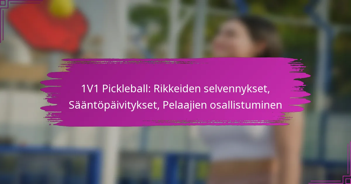 Viimeisimmät sääntöpäivitykset 1V1 pickleballissa keskittyvät rikkomusten selkeyttämiseen, pelaajien sitoutumisen parantamiseen ja yhteisön palautteeseen vastaamiseen. Nämä muutokset pyrkivät parantamaan koko pelielämystä ja varmistamaan reilun kilpailun.