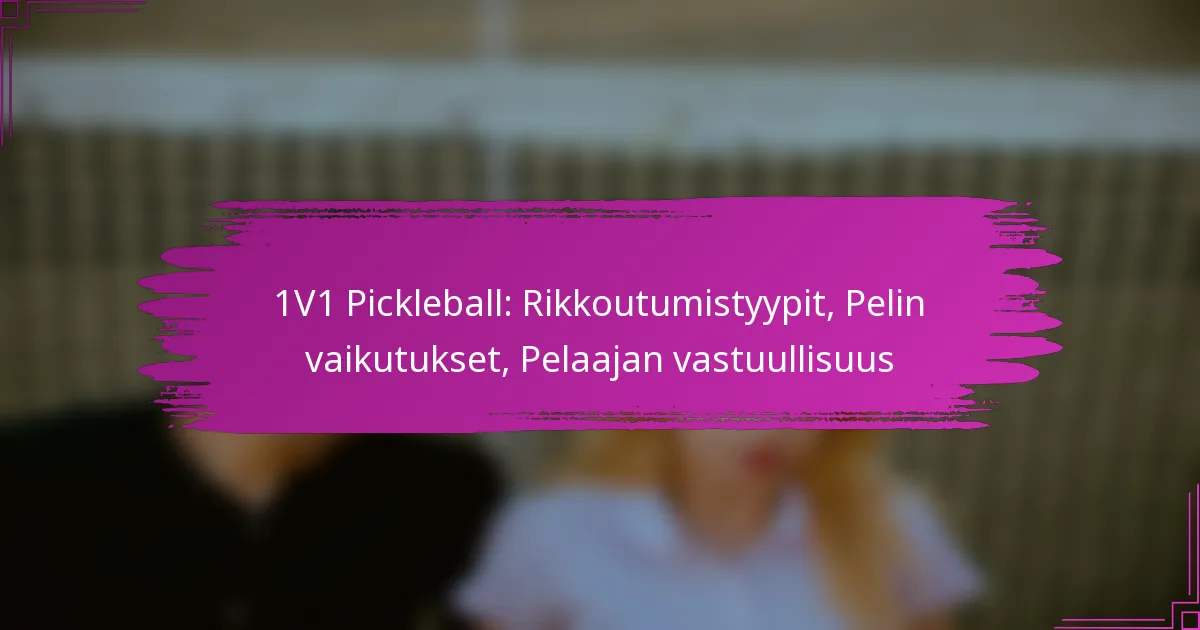 1v1 pickleballissa on olennaista ymmärtää erilaiset virheet, kuten jalkavirheet ja verkon rikkomukset, jotta peli pysyy reiluna ja pelattavuus paranee. Nämä rikkomukset voivat merkittävästi vaikuttaa pelin lopputulokseen, vaikuttaen pisteisiin ja peliin. Pelaajien vastuullisuus on tärkeässä roolissa pelin eheyden ja urheiluhengen varmistamisessa, sillä pelaajien on otettava vastuu teoistaan luodakseen kunnioittavan ympäristön.