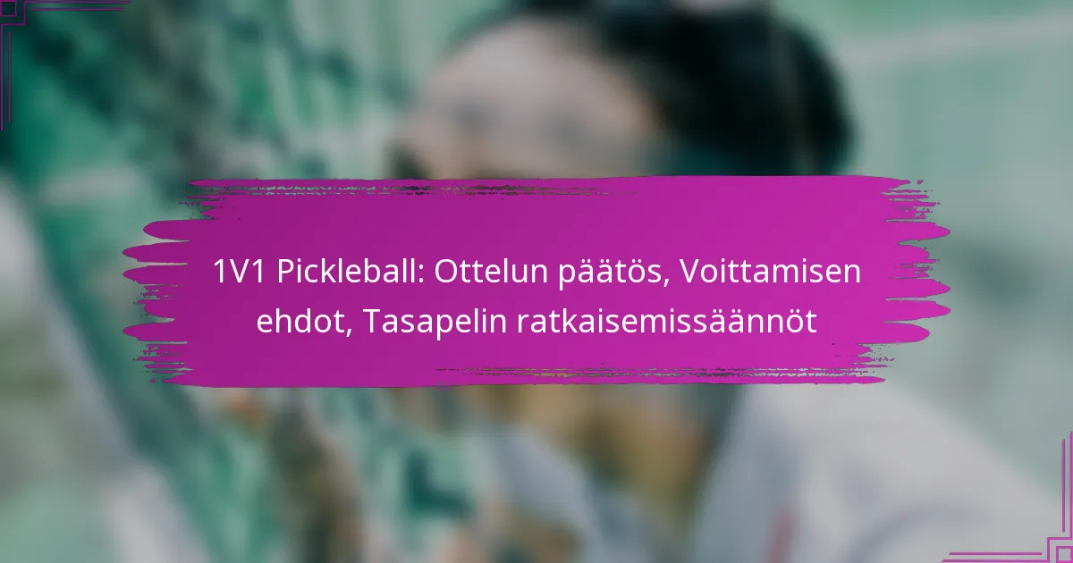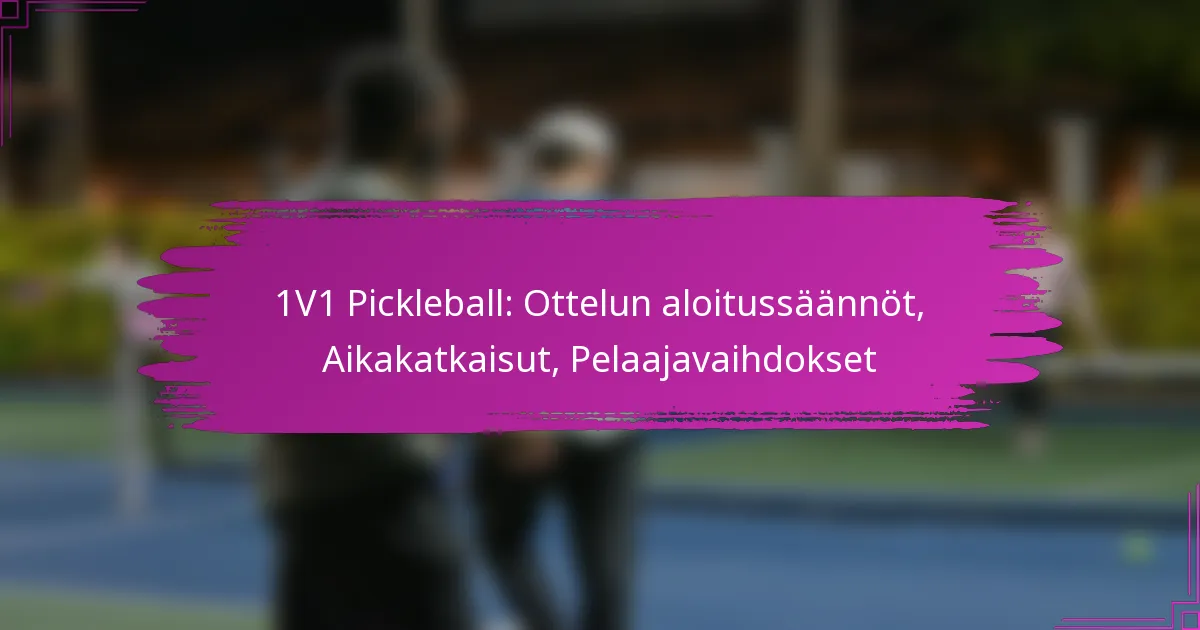 1V1 pickleballissa ottelun aloitussäännöistä ymmärtäminen on ratkaisevan tärkeää sujuvan ja reilun pelin varmistamiseksi, sillä ne määrittelevät syöttöjärjestyksen ja pelaajien vastuudet. Pelaajille annetaan myös aikakatkoja lepoa tai strategian suunnittelua varten, vaikka näitä on rajoitettu määrä ja ne voivat vaikuttaa ottelun lopputulokseen. Vaikka pelaajavaihdot eivät yleensä ole sallittuja virallisessa pelissä, on olemassa ohjeita rentoihin tilanteisiin, joissa joustavuus voi olla mahdollista.
