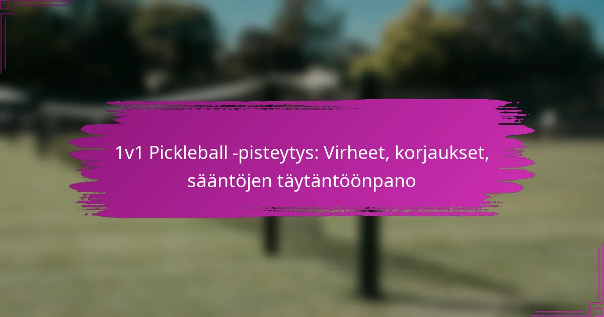 Pisteytysvirheiden korjaaminen 1v1 pickleballissa sisältää virheen tunnistamisen, vakiintuneiden menettelyjen noudattamisen pisteen korjaamiseksi ja mahdollisten riitojen ratkaisemisen. Reilun pelin käytäntöjen noudattaminen ja korjausten dokumentointi varmistavat sujuvan ja läpinäkyvän pelin.