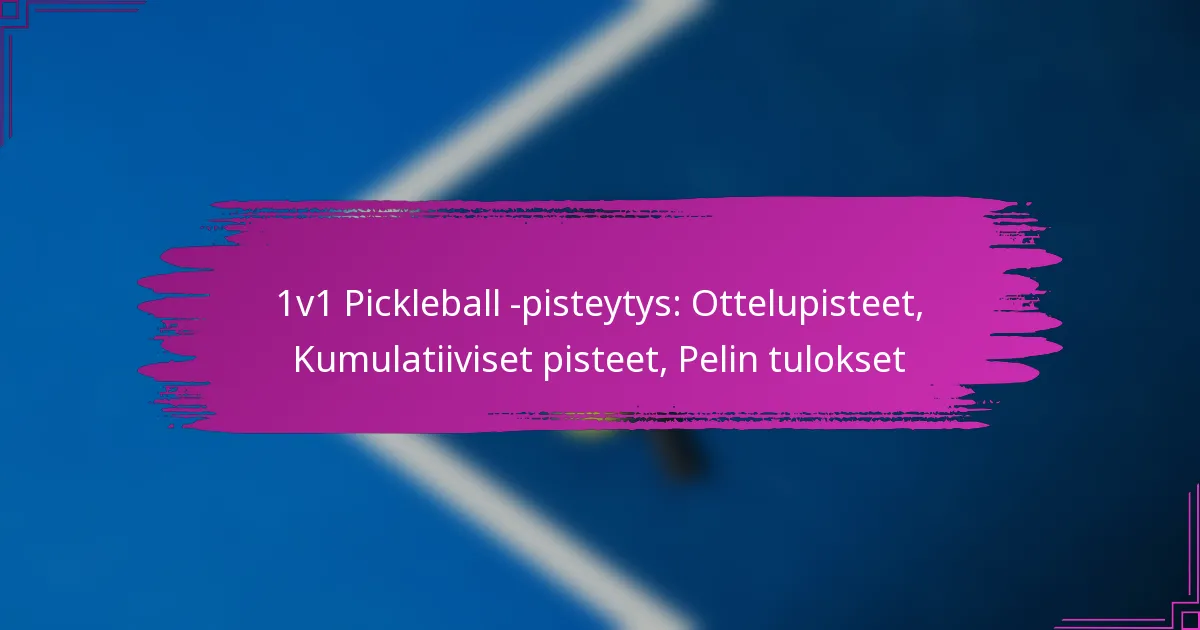 1v1 pickleball-otteluissa pelin lopputulokset määräytyvät kummankin pelaajan saavuttamien kumulatiivisten pisteiden perusteella ottelun aikana. Pelaaja, joka saavuttaa ennalta määrätyn pisteen ensimmäisenä, tyypillisesti 11 tai 15 pistettä, voittaa pelin, mutta hänen on johdettava vähintään kahdella pisteellä varmistaakseen voiton.