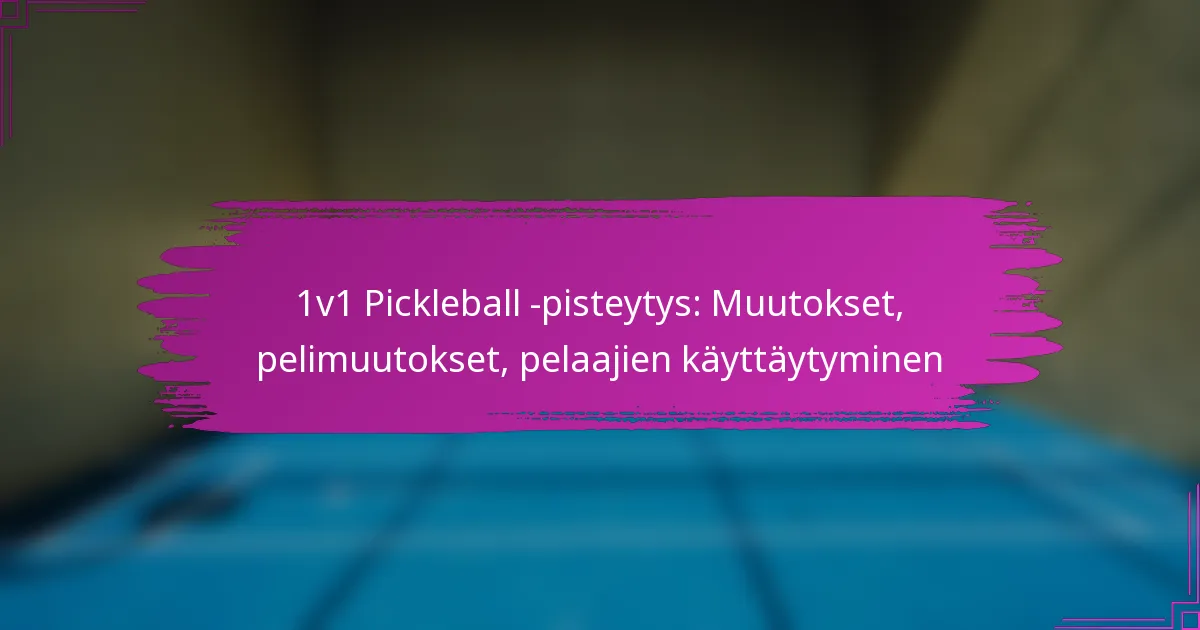 Eri pelimuodot vaikuttavat merkittävästi 1v1 pickleballin pisteytykseen määrittämällä, miten pisteitä ansaitaan ja ottelun kokonaisrakenteeseen. Jokaisella muodolla on ainutlaatuiset säännöt, jotka voivat vaikuttaa strategiaan, tempoon ja pelaajien kestävyyteen.