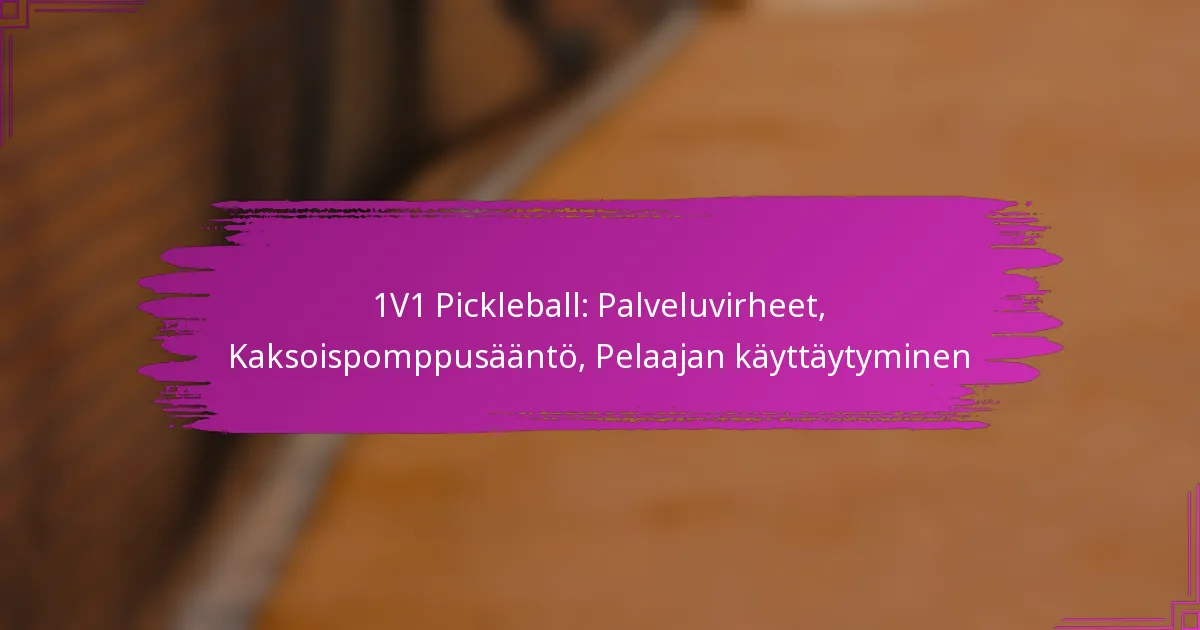 1V1 pickleballissa on olennaista ymmärtää syöttövirheiden, tuplapompun säännön ja pelaajien käytöksen ympärillä olevat säännöt, jotta peli olisi reilua ja nautittavaa. Syöttövirheet voivat johtaa syöttövuoron menettämiseen, kun taas tuplapompun sääntö kannustaa strategiseen pelaamiseen vaatimalla, että pallo pomppaa kerran kummallakin puolella ennen kuin pelaajat voivat lyödä sen ilmassa. Lisäksi kunnioituksen ja urheiluhengen ylläpitäminen pelaajien keskuudessa parantaa kokonaiskokemusta ja luo positiivista ilmapiiriä kentällä.